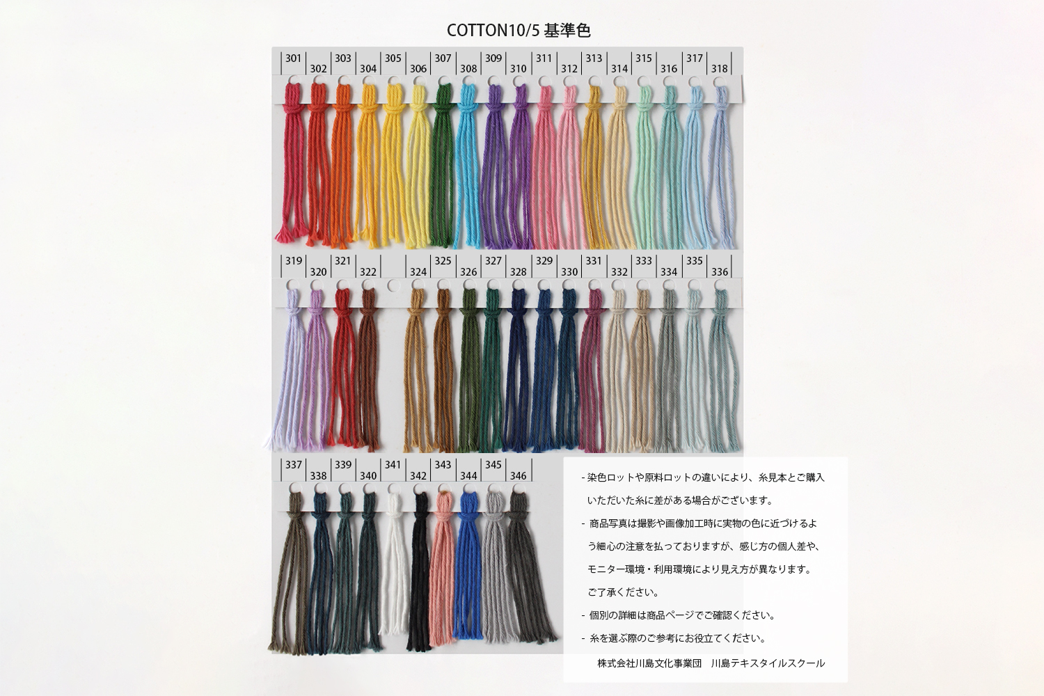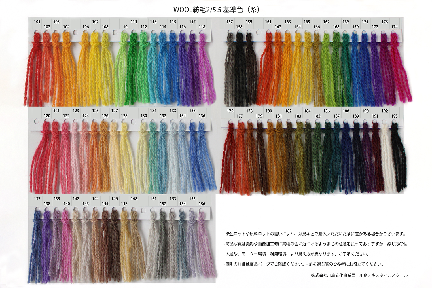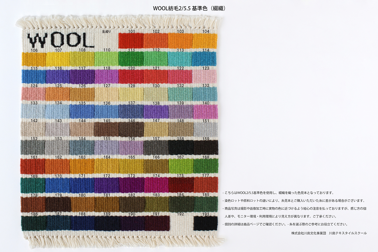 染色糸:綿(cotton 10/5 色見本1)、ウール(wool紡毛2/5.5 色見本2色見本3)、ブライトスフ